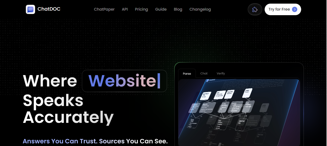 ChatDOC is an AI tool that reads, analyzes, and answers questions from PDFs or documents, enabling fast comprehension, summaries, and knowledge extraction.